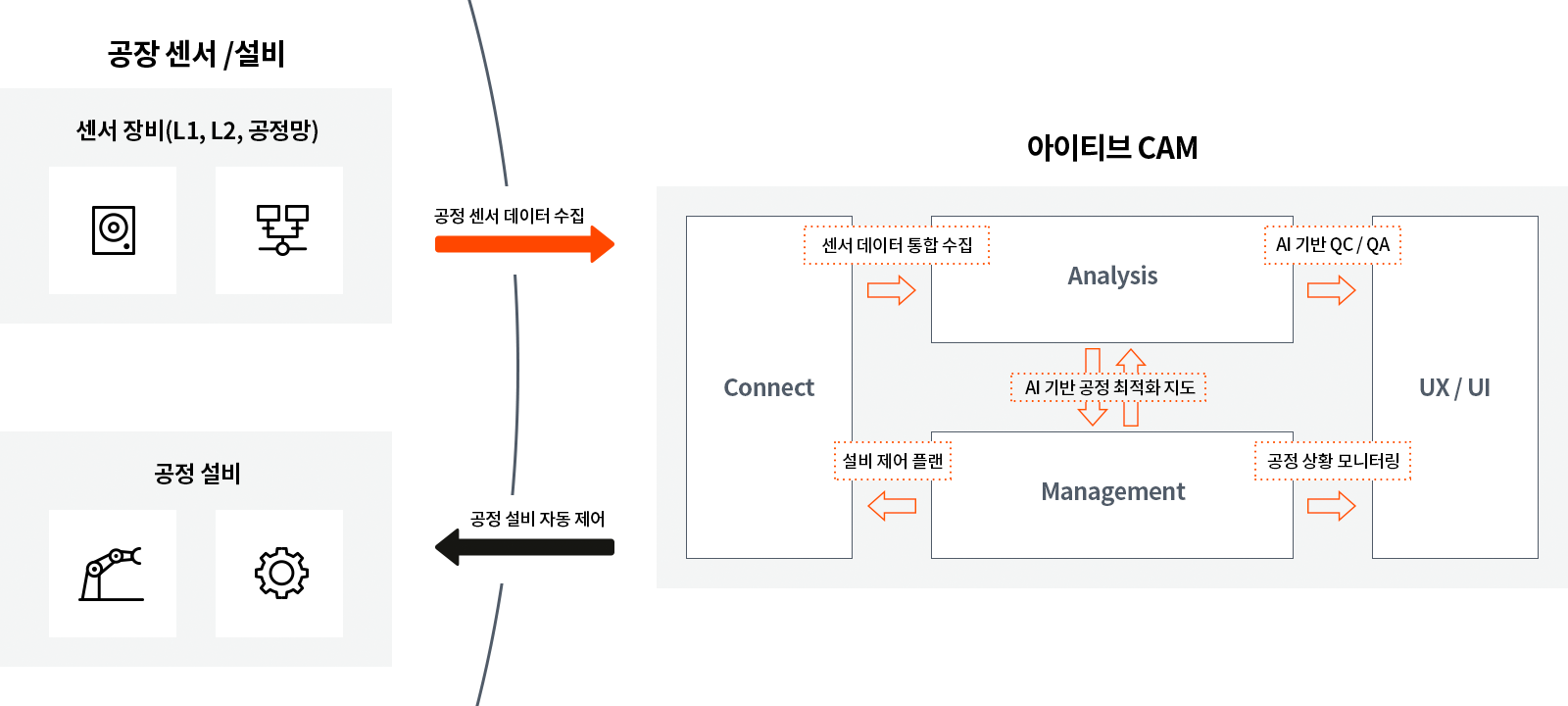 아이티브CAM은 공정 지능화 구축을 기반으로 AI 자율 제조를 실현하는 차세대 공정 제어 솔루션입니다.