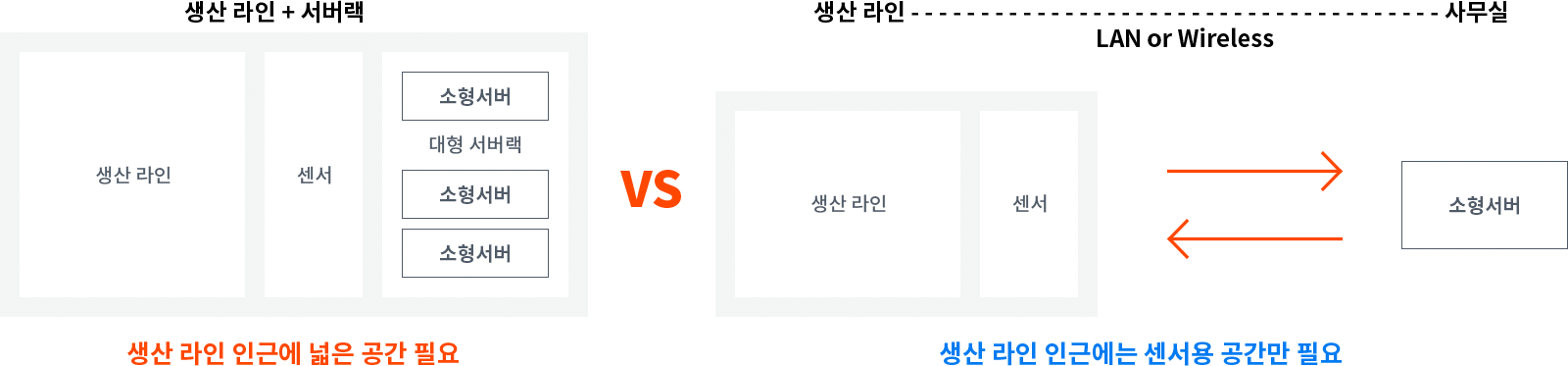 이를 통해 현장 환경으로부터 서버를 보호하고 유지보수 부담을 줄여, 안정적인 데이터 수집과 공정 제어를 실현합니다.